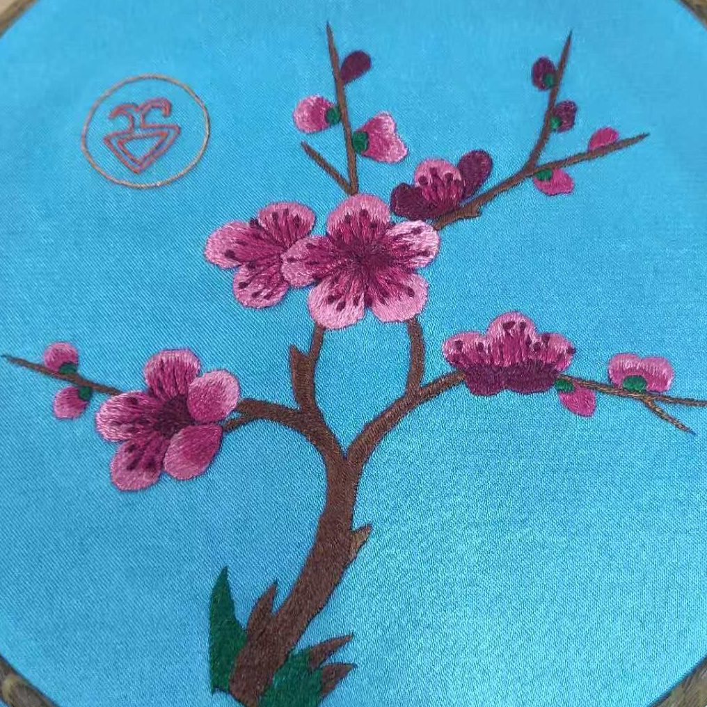 彝绣作品2——《双凤衔春》