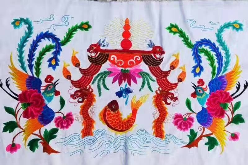 彝绣作品3——《龙凤呈祥·福聚太平》
