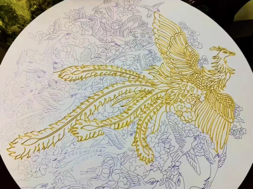 在云南多民族文化中,凤是“吉祥神鸟”,山茶花是“滇地名片”,二者结合既承载着民间对美好生活的祈愿,也以本土花卉元素让传统吉祥纹样更具地域辨识度——这幅作品既是掐丝珐琅技艺的展示,也是云南自然与文化之美的视觉凝练。