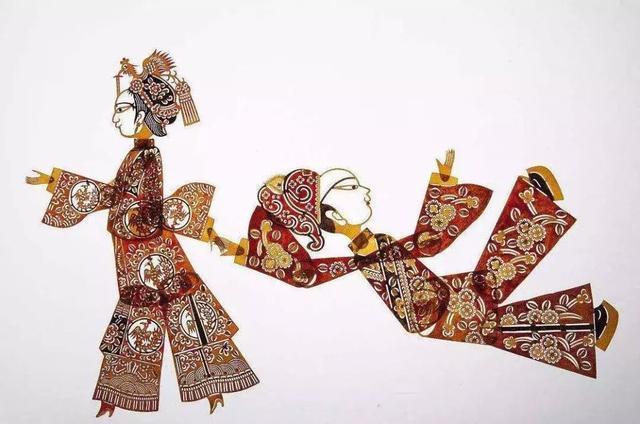 工艺层面,作品延续了云南皮影的核心技法:选用韧性极佳的黄牛皮经多道工序制为影皮,衣袍部分采用 “多层镂空 + 填色” 工艺,最细处的花卉纹样仅 1 毫米宽,透光时能呈现出细腻的层次;人偶的关节以丝线连接,搭配操纵签子后,可灵活呈现水袖舒展、肢体倾斜的动态 —— 画面中右侧旦角的俯身姿态,正是皮影艺人通过 “签子控位” 实现的生动表演效果。