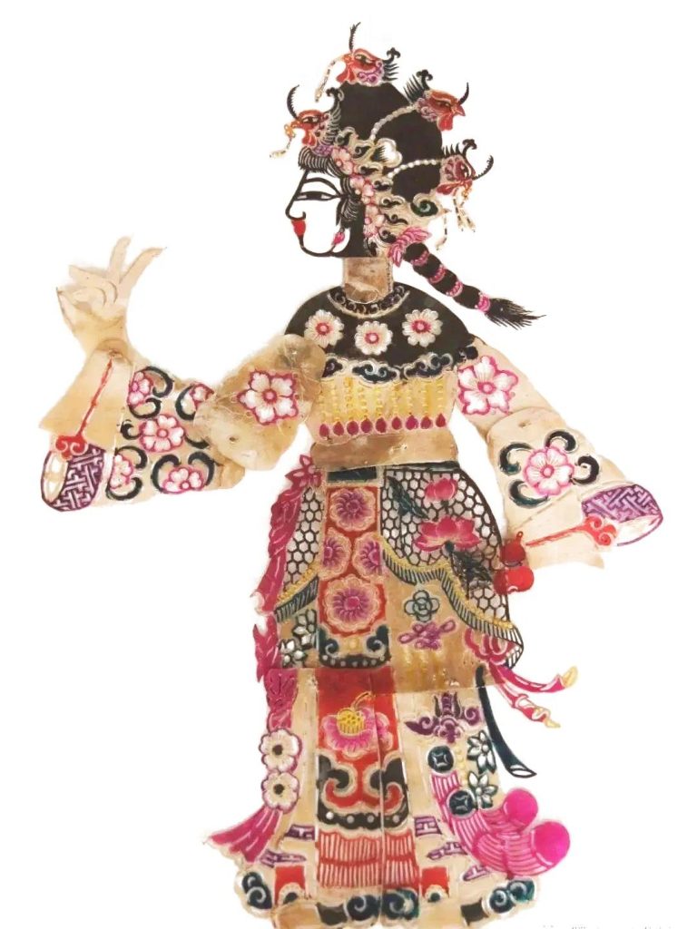 文化意涵上,这类旦角表演常见于云南白族《望夫云》、彝族《阿诗玛》等民族叙事类皮影戏中,既是对民间爱情故事的演绎,也通过服饰、姿态传递着云南多民族的审美与情感。如今这样的作品不仅是戏台表演的道具,更成为展示云南皮影 “以影传情” 魅力的文化载体,让观展人能从静态造型里感受到传统表演的灵动韵味。