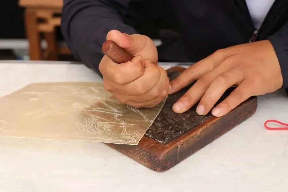 工艺层面,作品延续云南皮影的核心技法:选用韧性极佳的黄牛皮经刮薄、晾晒、上胶等工序制为影皮,衣袍部分采用 “多层镂空 + 填色晕染” 工艺,最细处的花卉纹样仅 1 毫米宽,透光时能呈现出细腻的层次;人偶关节以丝线串联,搭配操纵签子后,可灵活呈现挥袖、踏足等动态 —— 画面中旦角们舒展的肢体姿态,正是皮影艺人通过 “多签联动” 实现的鲜活表演效果。