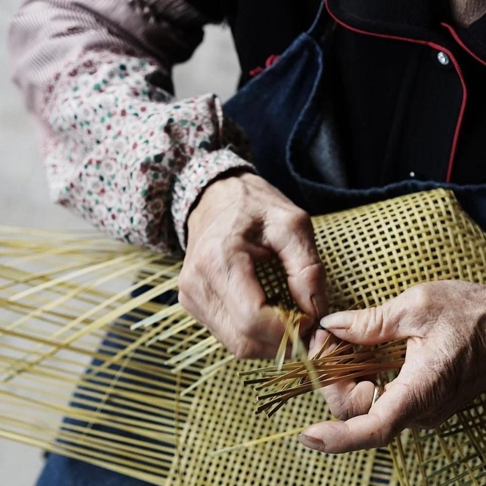 在云南竹编传统中,“经纬交织” 既代表 “天地方圆” 的自然哲学,也暗含 “有序共生” 的生活智慧;而双色纹样的创新,是当代匠人对传统竹编 “单色肌理” 的突破 —— 以天然草木染的青色搭配竹材原色,既保留非遗工艺的生态内核,又让竹编纹样更契合现代审美,展现了非遗技艺 “传统根基上的当代生长”。